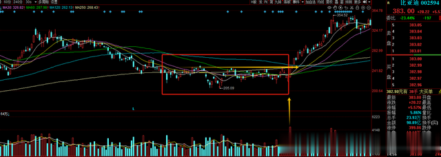 2、均线密码:短期均线(5日、10日)与中期均线(30日、60日)逐渐粘合,形成"均线束"。比亚迪(002594)在2022年2-5月的整理中,5条关键均线最大间距不超过3%,堪称教科书级形态。